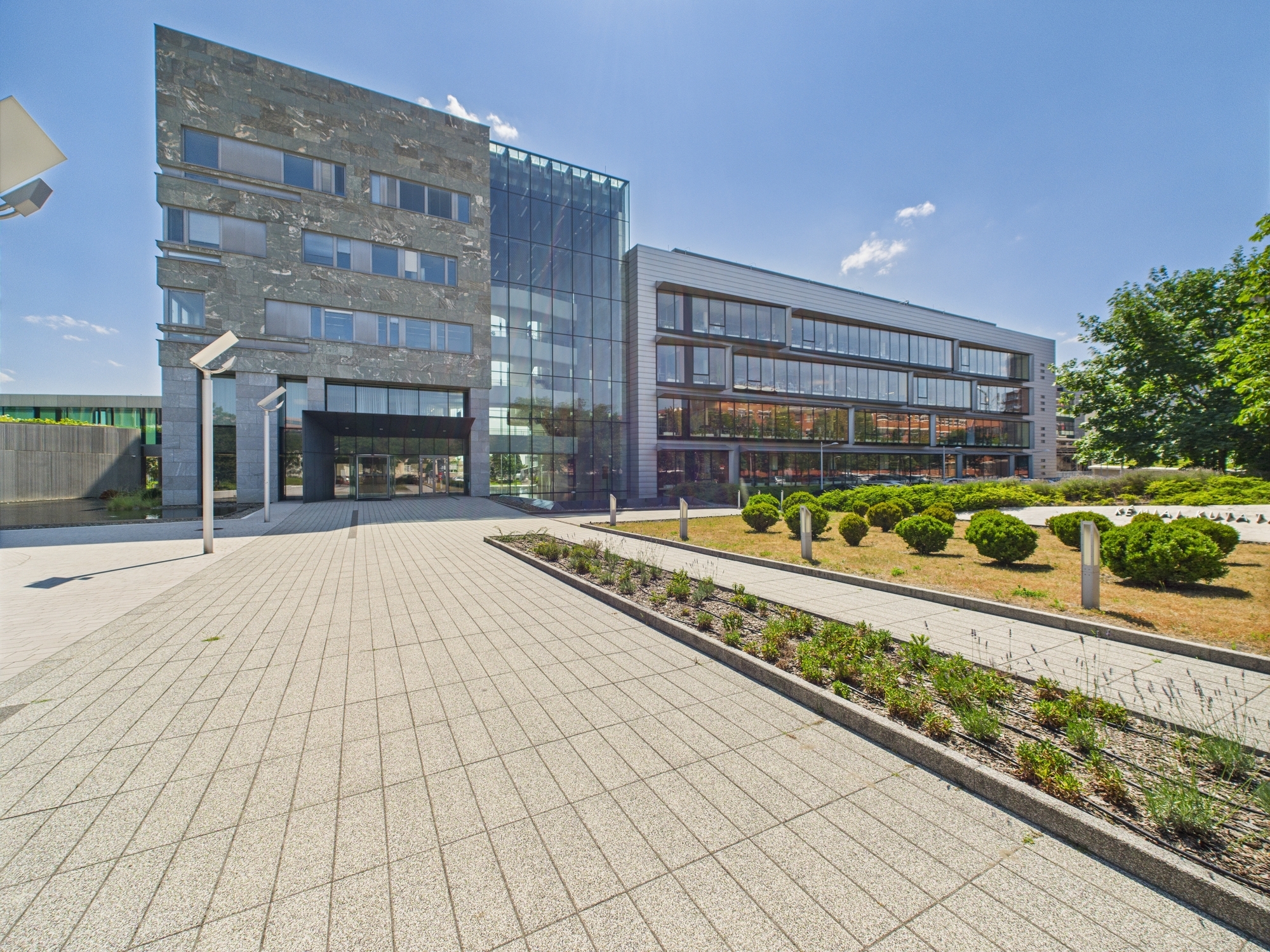 A környező zöldterületek kellemes, nyugodt közeget biztosítanak, ugyanakkor a fő közlekedési útvonalakhoz és tömegközlekedéshez is közel van, így kiváló választás reprezentatív vállalati központnak.